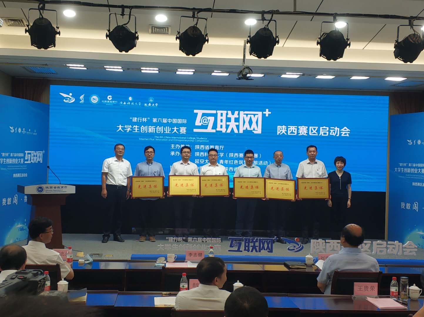 会上,陕西科技大学、延安大学、中国建设银行陕西省分行相关领导和负责同志进行了致辞。会议宣读了《关于表彰第五届中国“互联网+”大学生创新创业大赛组织工作先进集体和先进个人的通报》。西安科技大学在大赛组织工作中作出突出贡献被授予“特别贡献奖”,王贵荣代表我校领奖。同时,我校教务处、团委被授予大赛组织工作“先进集体”,刘琳、杨川、郭婷、周学刚四位同志被评为大赛组织工作“先进个人”。